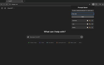 Prompt Saver is a powerful Chrome extension designed to enhance your experience with ChatGPT by allowing you to save, tag, and manage your prompts effortlessly. This free tool addresses the common issue of retyping frequently used prompts, providing a streamlined solution to access your favorite queries quickly. With an intuitive interface, users can easily create and organize prompts, making it a valuable addition for anyone looking to improve their interaction with AI.